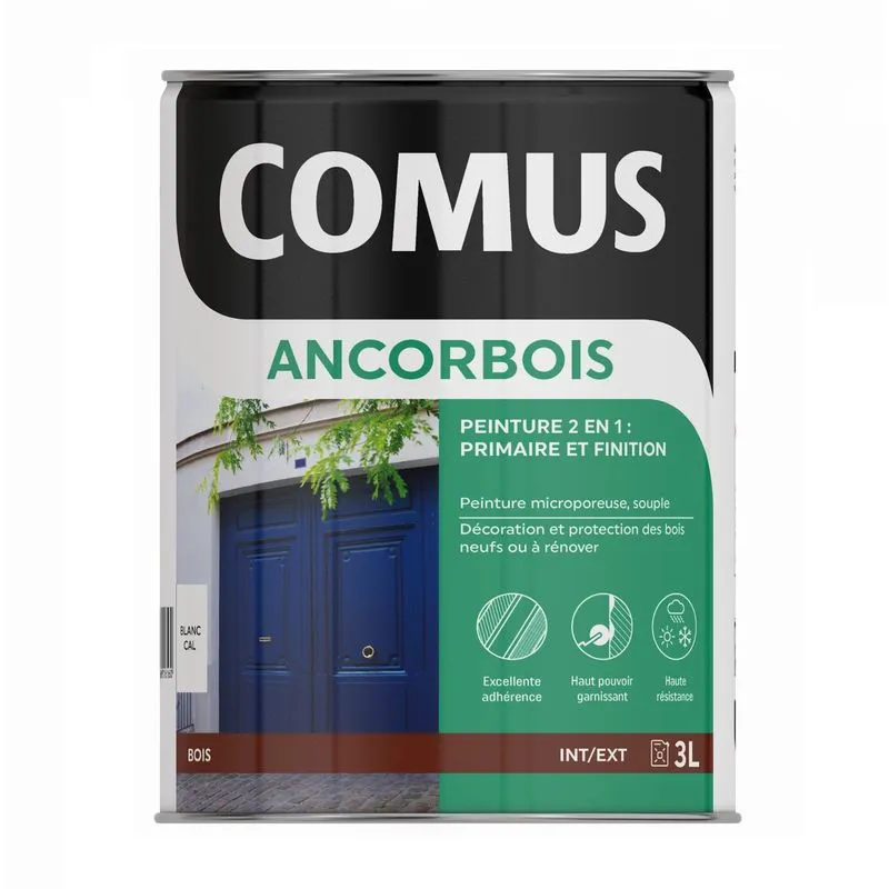 COMUS ANCORBOIS Blanc 3L – Peinture De Protection Et De Décoration Microporeuse 2 En 1 (primaire Et Finition) Bois – Blanc