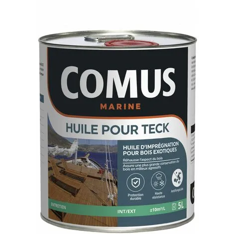 PROPRIÉTÉS ET AVANTAGES HUILE POUR TECK Huile d’imprégnation pour bois exotiques. En phase solvante, elle dispose d’une teinte Légèrement ambrée. Extérieur. Très nourrissante Imprègne et protège durablement le teck Permet une protection anti-UV et antifongique de longue durée CONDITIONNEMENT 1L et 5L RENDEMENT 10m² / L Sur bois exotique neuf, laisser le bois vieillir (1 an) avant application pour favoriser l’imprégnation et le séchage normal de l’huile. « Produit dangereux. Respecter les précautions d’emploi »